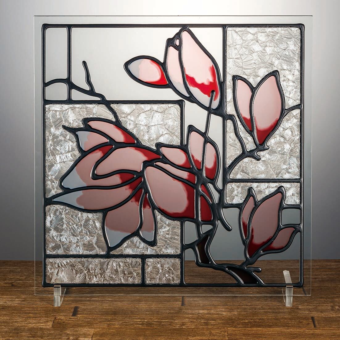 春を告げる花として親しまれている木蓮を淡い色彩を基調としてアールヌーボー調にデザインしました。
